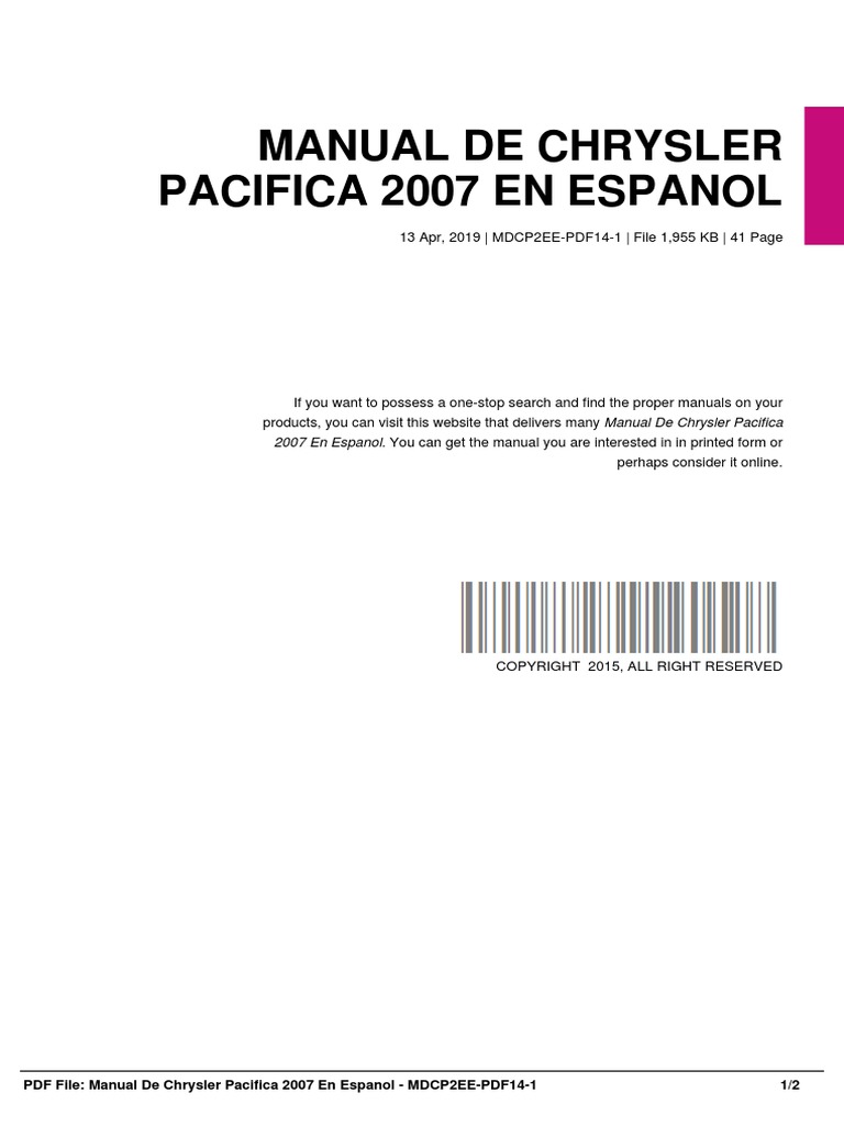 [28+] 4manual Espanol Chrysler Pacifica 2005, Manual De Chrysler Pacifica 2007 En Espanol | Information Science | E Books
